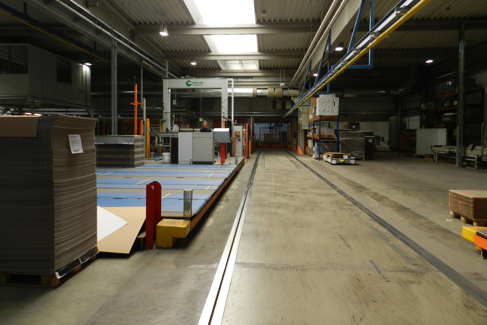 Neubau einer Maschinenhalle für ein Wellpappewerk sowie eines Rollen-lagers, Sanierung von Teilen des Bestandsgebäudes, Neugestaltung des Mitarbeiterparkplatzes und der umgebenden Freiflächen, Freilegen eines Bachlaufes sowie Finalisieren des Werksschutzes.