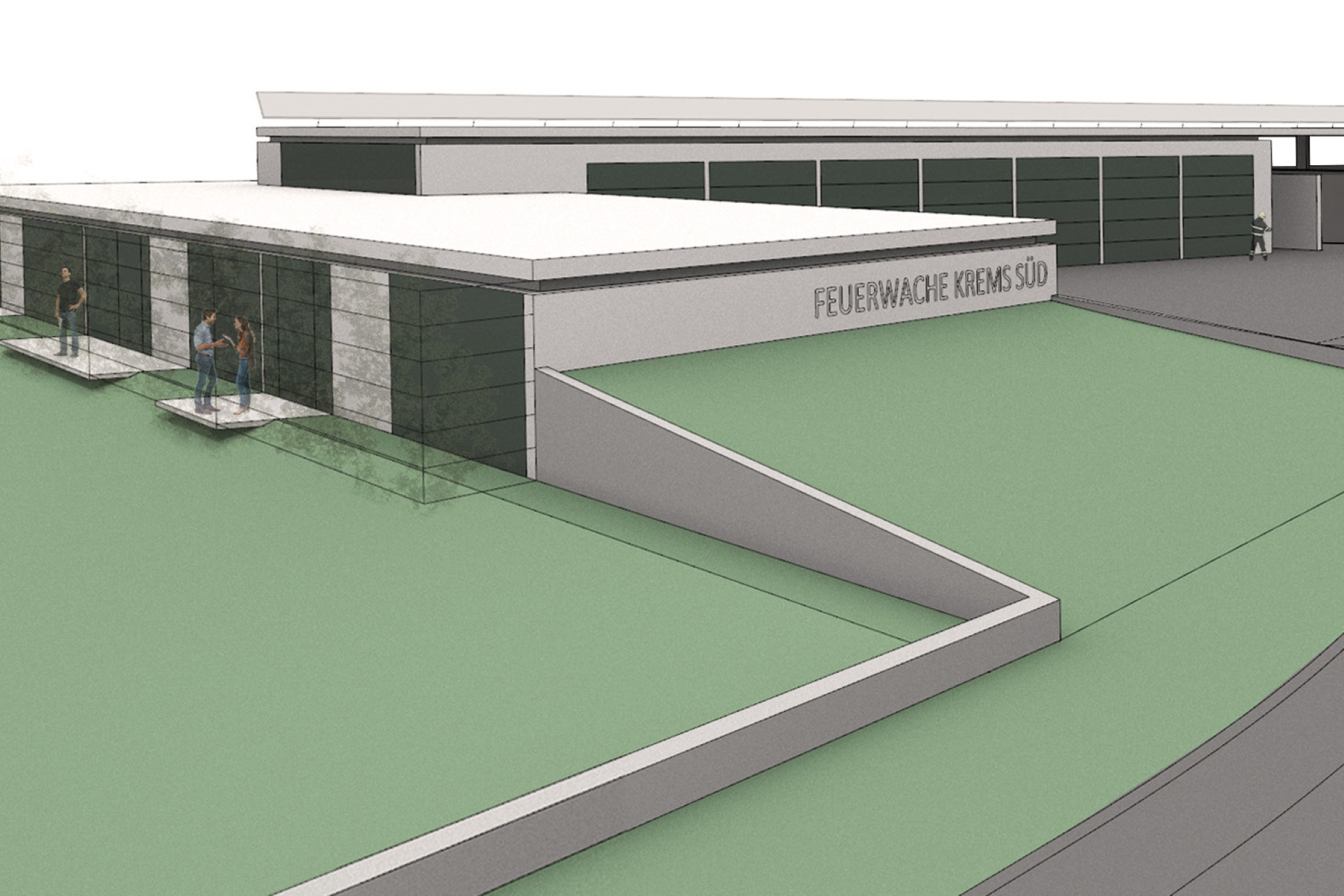 Die Aufgabe bestand darin, in Krems-Süd, Katastralgemeinde Hollenberg, auf einem bis dato unbebauten Grundstück eine neue Feuerwache nach der Richtlinie des österreichischen Bundes-feuerwehrverbandes zu errichten.